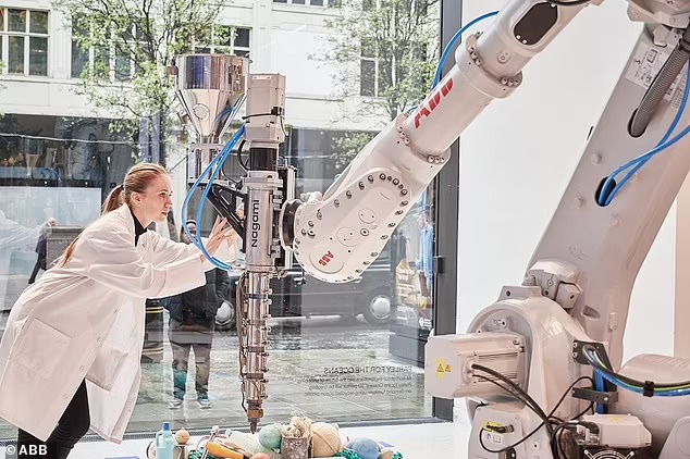 تقوم شركة Selfridges بتثبيت روبوت بطول 8 أقدام، بطباعة ثلاثية الأبعاد في نافذة متجر متعدد الأقسام، لتحويل التلوث البلاستيكي إلى كائنات مصممة مثل المزهريات وأغطية المصابيح، حسب ما نشره صحيفة ديلي ميل البريطانية.