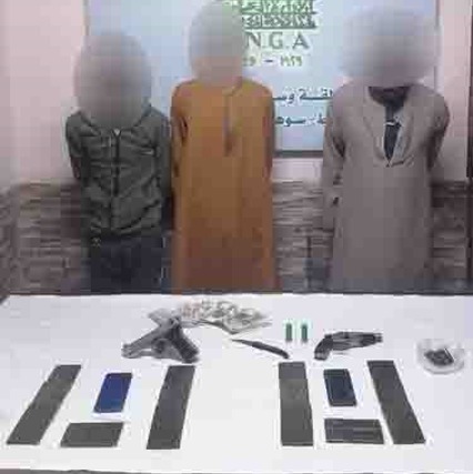 كما تم ضبط مبالغ مالية – طبنجة صوت – فرد خرطوش – 2 طلقة خرطوش – 63 هاتفا محمولا – 3 سيارات – 5 دراجات نارية – 2 ميزان – 12 قطعة سلاح أبيض – 4 قطع مشغولات ذهبية.