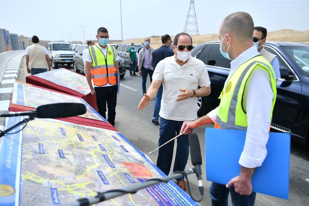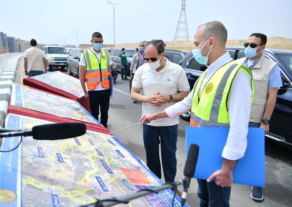 وذكر المتحدث الرسمي رئاسة الجمهورية، أن جولة الرئيس السيسي، تضمنت تفقد سير العمل بمحور جيهان السادات الرابط بين مناطق وسط البلد وميدان رمسيس حتى طريق الأوتوستراد، فضلا عن أعمال إنشاء محور حسب الله الكفراوي الذي يربط بين جنوب القاهرة في منطقة المعادي حتى حي الأسمرات، إلى جانب المراحل النهائية من محور الدكتورة سميرة موسي الرابط بين حي الأسمرات ومناطق شرق القاهرة والقاهرة الجديدة.