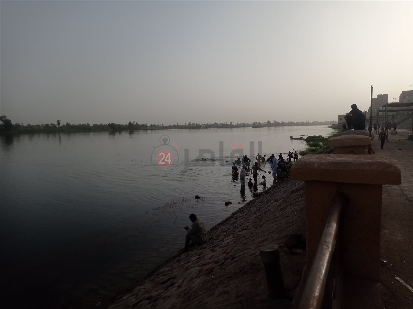 أهالي قنا يلجئون إلى نهر النيل للهروب من الحر في رمضان