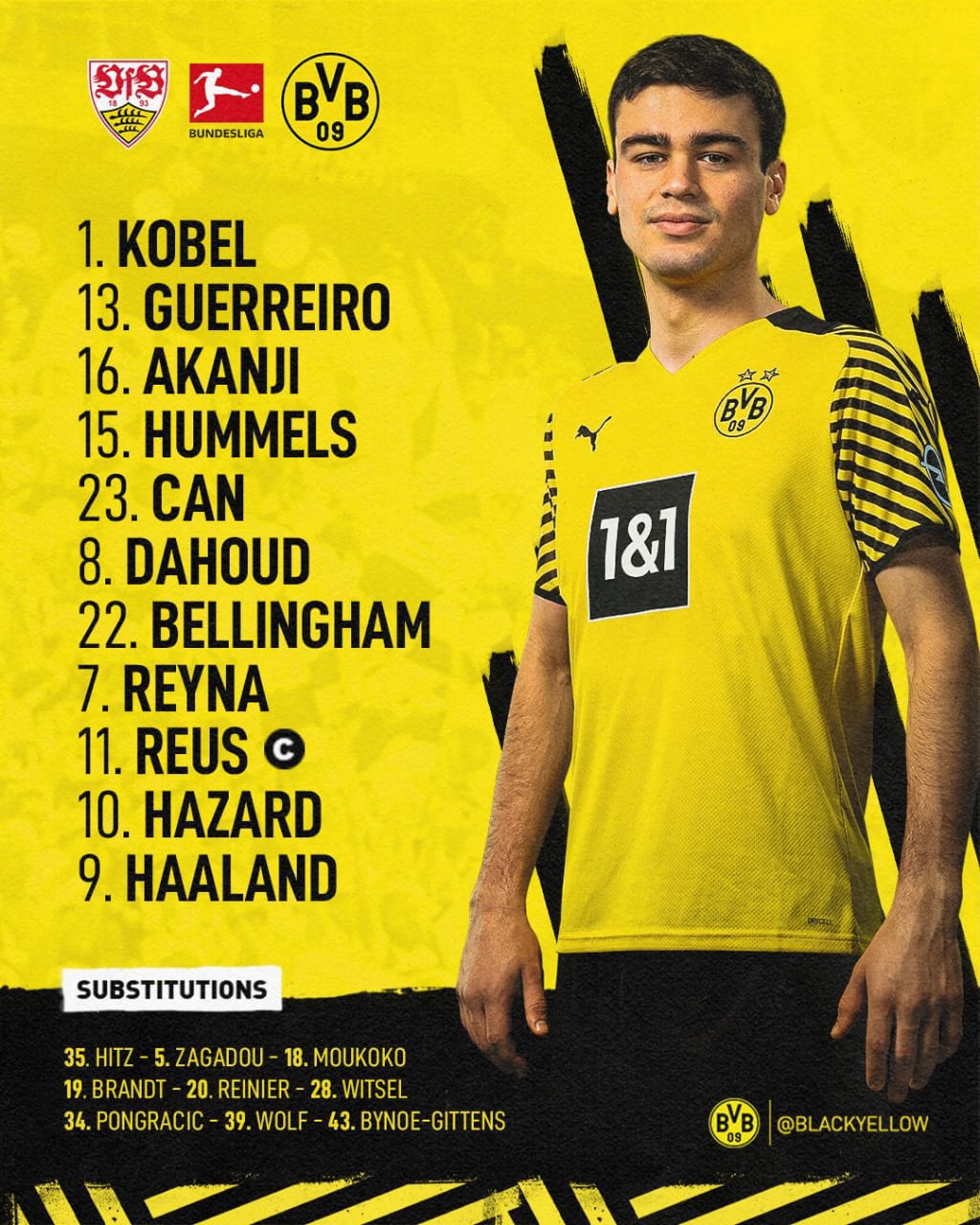 خط الهجوم: ثورجان هازارد، إيرلينج هالاند، ماركو ريوس.