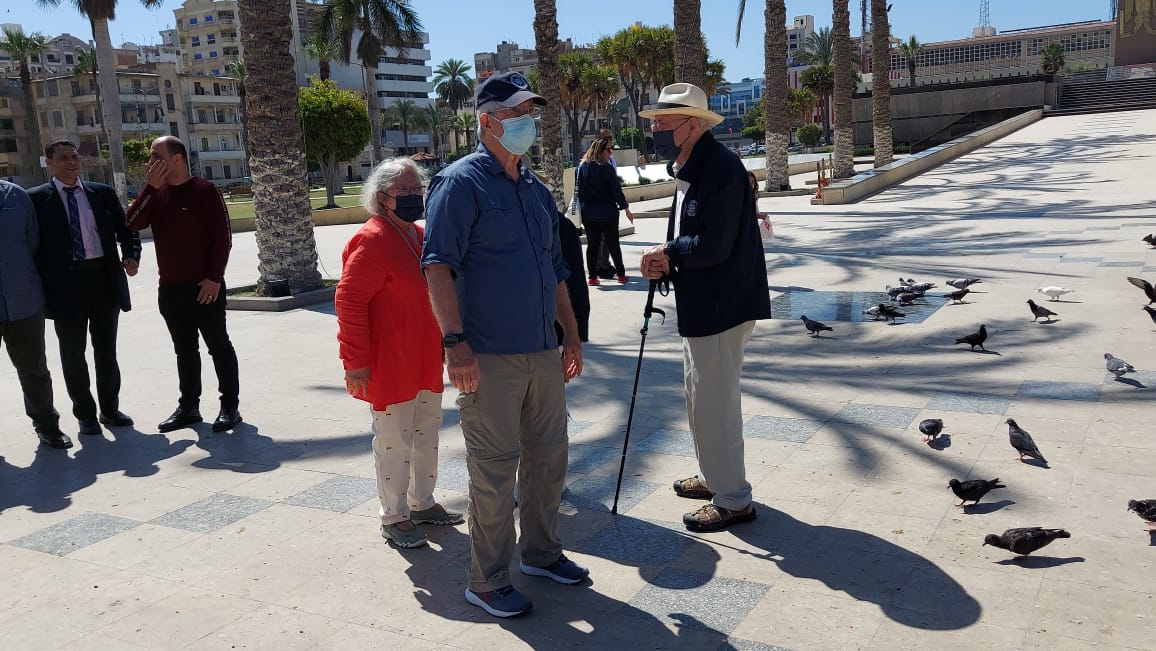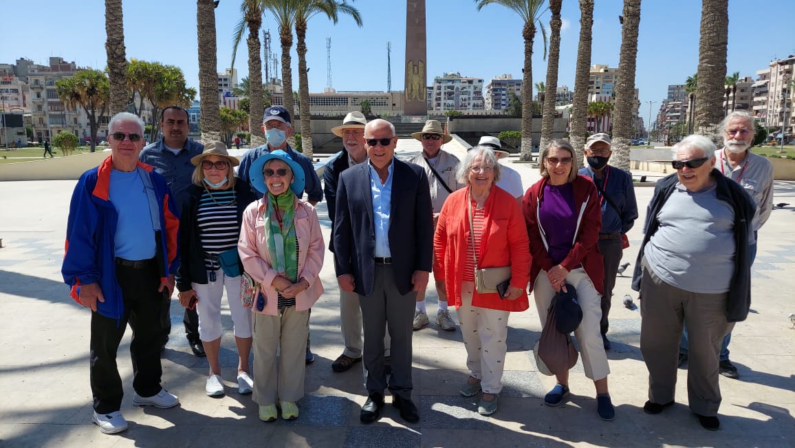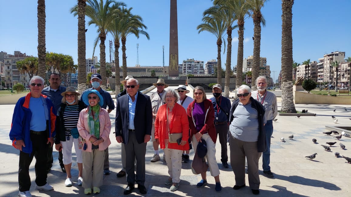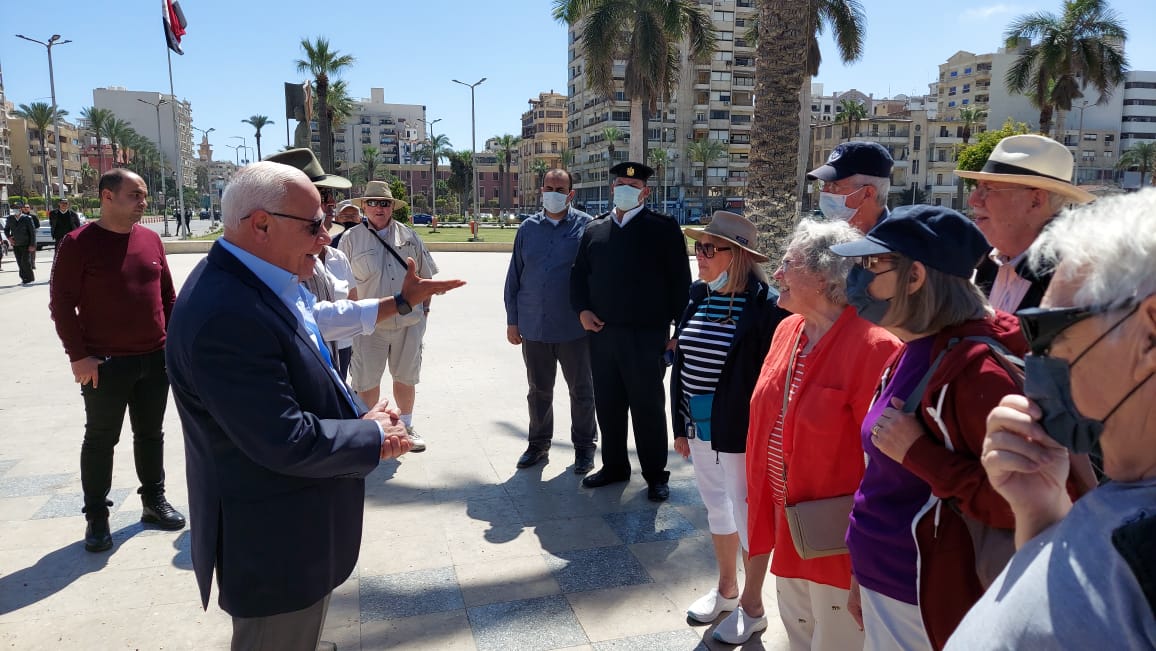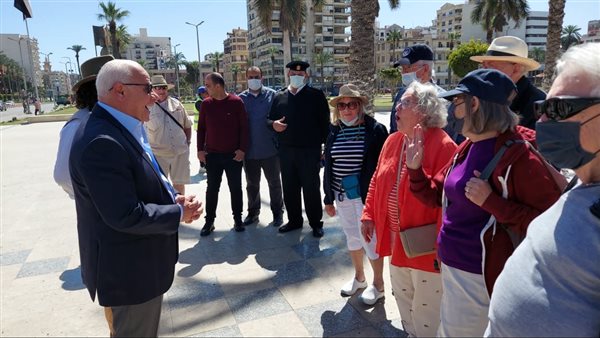 محافظ بورسعيد يلتقي عددا من السائحين الأجانب خلال زيارتهم لساحة الشهداء