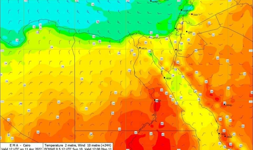 كما أعلنت الهيئة العامة للأرصاد الجوية المصرية عن ارتفاع درجات الحرارة متوقع في مصر على أنحاء الجمهورية كافة، وذلك بداية من يوم السبت المقبل الموافق 16 أبريل، بقيم تتراوح ما بين 4 إلى 9 درجات مئوية على القاهرة الكبرى والوجه البحري بالمقارنة بالدرجات التي تسجلها يوم الخميس والجمعة المقبلين.