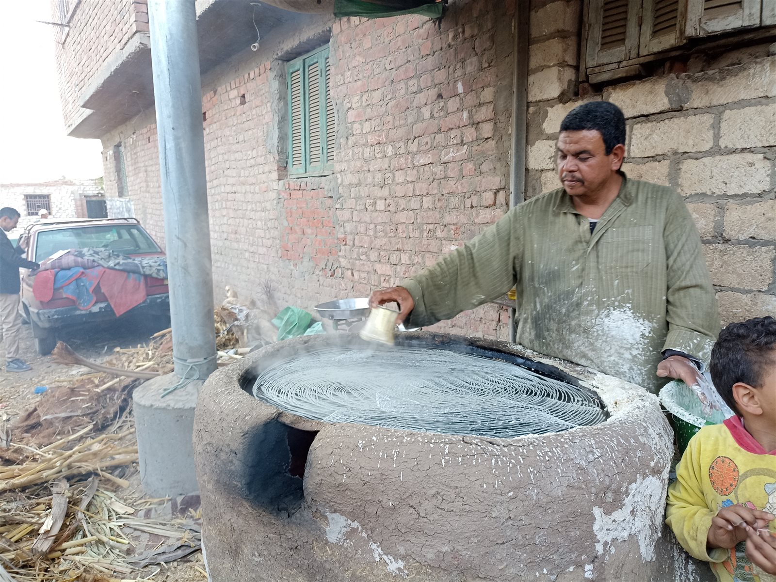 حكاية عم عرفات.. أقدم صانع كنافة بلدي ببني سويف وقودها البوص والحطب|صور وفيديو