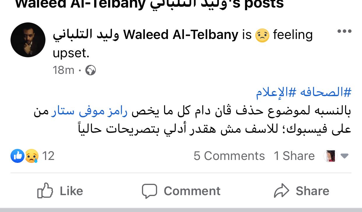 وعلق وليد التلباني، مدير أعمال فان دام على الأمر، وذلك عبر حسابه الرسمي بموقع التواصل الاجتماعي فيسبوك، وعلق قائلًا: بالنسبة لموضوع حذف ڤان دام كل ما يخص برنامج رامز موفي ستار من على فيسبوك؛ للأسف مش هقدر أدلي بتصريحات حاليًا.