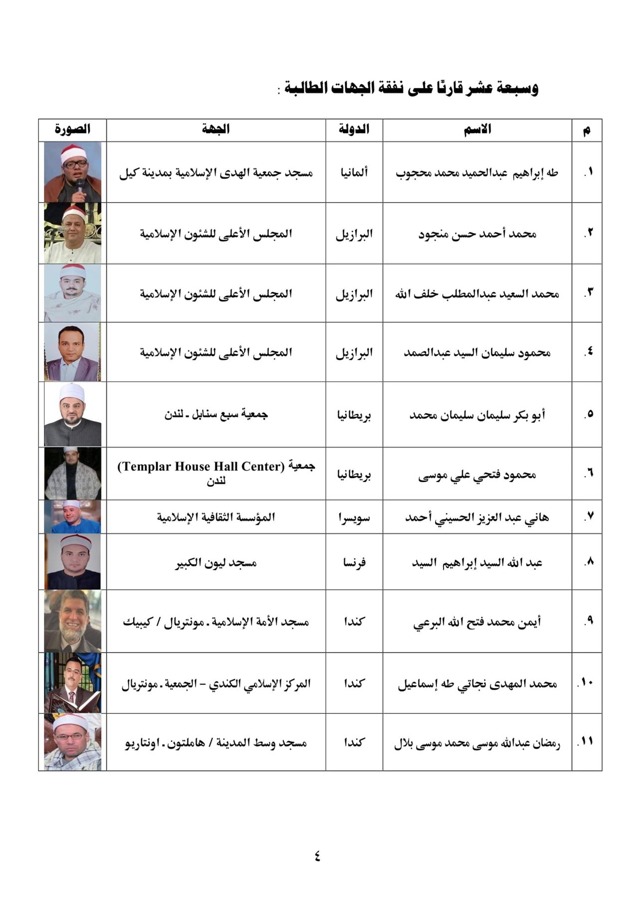 أوفدت وزارة الأوقاف المصرية 43 قارئًا مصريًا لإحياء ليالي شهر رمضان 1443هـ، بمختلف دول العالم، منهم 26 قارئًا على نفقة الوزارة.