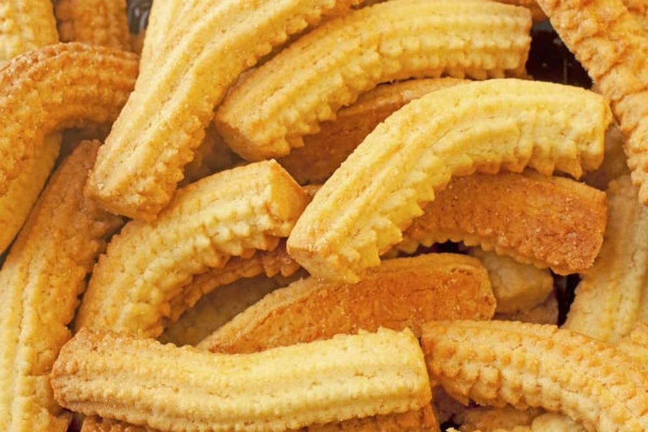نحضر إناء واسع ونخلط السكر والزبدة والسكر البودرة حتى يصبح القوام كريمي، ثم نضيف البيض تدريجيًا ونخفق القوام بمضرب الكهرباء، ثم نضيف مسحوق البرتقال والفانيليا وضعي الدقيق ورشة الملح تدريجيًا في اتجاة واحد، وحركي الخليط في اتجاه واحد حتى لا يخرج الهواء من العجين ويصبح هاشًا طريًا، ثم اجعلي العجينة في الأناء لمدة 15 دقيقة حتى ترتاح، ثم ضعيها في ماكينة البسكويت واصنعي الأشكال التي ترغبين بها منها السادة والذي ياخذ أشكالا والطويل والقصير ثم ضعيها في فرن 180° على ورقة من الزبدة.