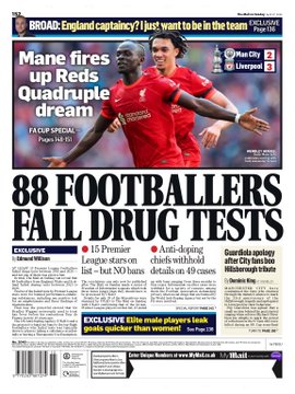 أشادت ديلي ميل في غلافها بهدف ساديو ماني في شباك فريق مانشستر سيتي أمس، حيث عنونت بـ ماني يطلق الريدز لحلم الرباعية.