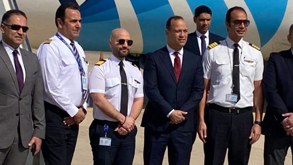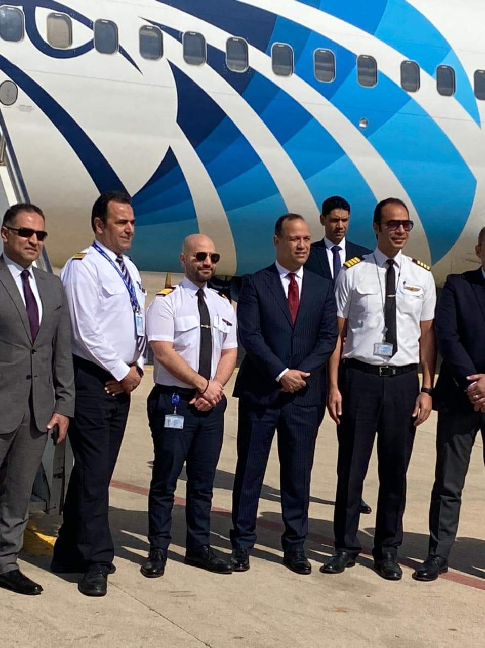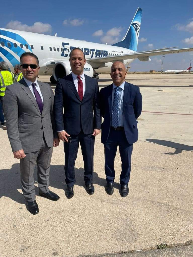 قنصل مصر العام بالإنابة في بنغازي يستقبل أول رحلة لشركة مصر للطيران إلى مطار بنغازي