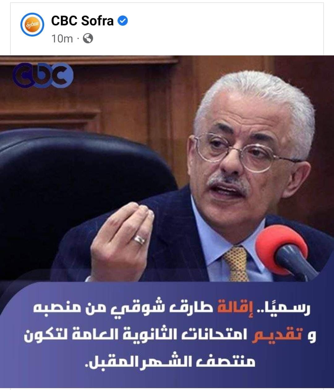 وتداول مستخدمو مواقع التواصل الاجتماعي منشورًا مزيفًا يحمل لوجو قناة سي بي سي سفرة بشأن خبر إقالة وزير التربية والتعليم.