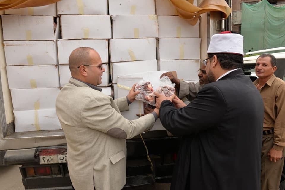 وثمن مختار جهود وزارة الأوقاف والتضامن الاجتماعي من خلال توزيع صكوك الطعام سواء كانت لحوم أو سلع غذائية متنوعه علي الأسر الأولي بالرعاية علي مستوي الجمهورية.