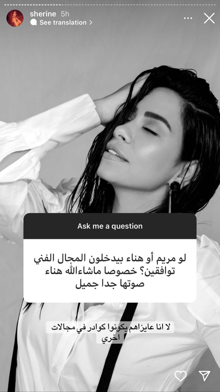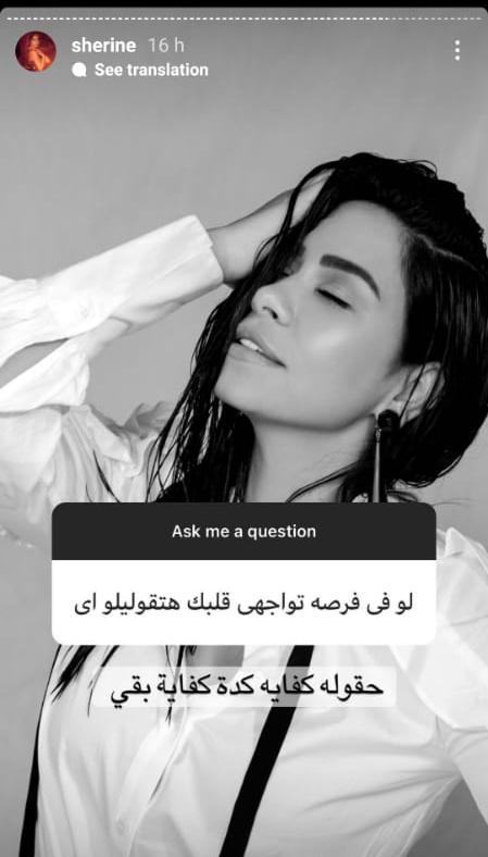 أجابت الفنانة شيرين عبد الوهاب على بعض أسألة المتابعين عبر حسابها الشخصي بموقع انستجرام، بعد أن نشرت ستوري تستقبل في أساله متابعينها، والتي كشفت عن عدم خضوعها لأي عمليات تجميل، وإنها لاتجيد اللغة الإنجليزية.