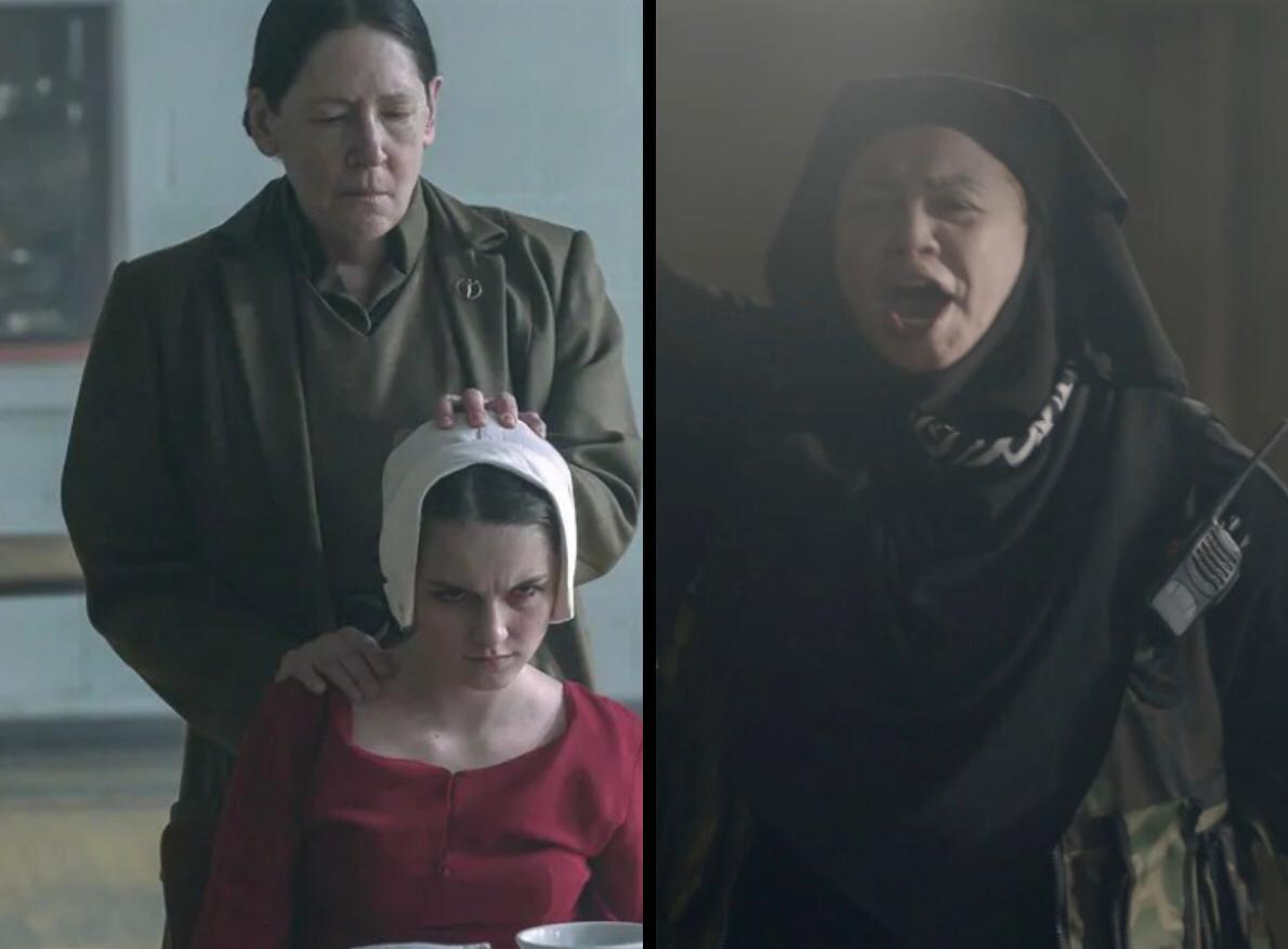 وتتشارك أم جهاد التي تقوم بدورها إلهام شاهين في بطلوع الروح مع Aunt Lydia في The Handmaid's Tale في العديد من الصفات بجانب مهمتهم الواحدة والتي تكون الإشراف على النساء في المدينة وعقابهن عند ارتكاب أي ذنب سواء بالجلد أو الرجم، وهذا ما رأيناه في أول ظهور لـ إلهام شاهين وهي تجلد إحدى السيدات بسبب محاولتها للهروب من مدينة الرقة.