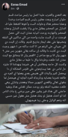 نشرت الطالبة إسراء عماد، طالبة بجامعة حلوان، عبر صفحتها على الفيس بوك، استجابة الأجهزة الأمنية بقسم شرطة حلوان، بعد نشر القاهرة 24، وتواصلهم معها لحل المشكلة حيث استغاثت الطالبة بعد تعدي صاحبة العقار المقيمة فيه برفقة زميلاتها عليهن، وطردهن في الشارع فجرا، بعدما دام حبسهن في العقار أكثر من ساعتين.