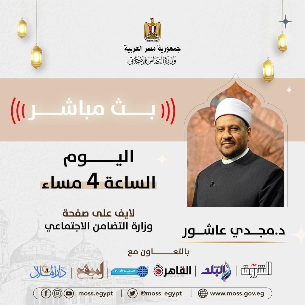 ناقش الشيخ مجدي عاشور مستشار مفتي الجمهورية، في ثاني حلقاته عبر البث المباشر الذي تطلقه وزارة التضامن الاجتماعي على صفحتها الرسمية بموقع التواصل الاجتماعي فيسبوك، خلال شهر رمضان المبارك- موضوع: التربية الأسرية الإيجابية.