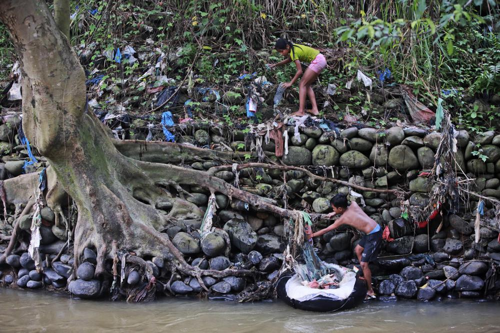 وفي إندونيسيا يقوم هذان الطفلان بتنظيف الأشجار التي تقع على النهر من مخلفات القمامة، قائلين: نأمل في منظر طبيعي خلاب اكثر من هذا هذه المناظر تلوث أبصرنا قبل صحتنا.