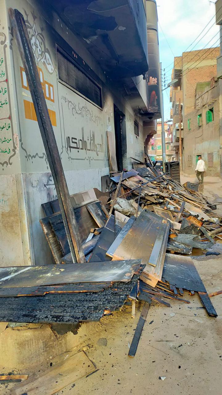 وكانت أجهزة الأمن تلقت بلاغًا يفيد بنشوب حريق هائل في ورشة منجد أسفل عقار مكون من 3 طوابق بمنطقة الحرس الوطني بمدينة بنها، ورجحت المعاينة الأولية أن السبب ماس كهربائي