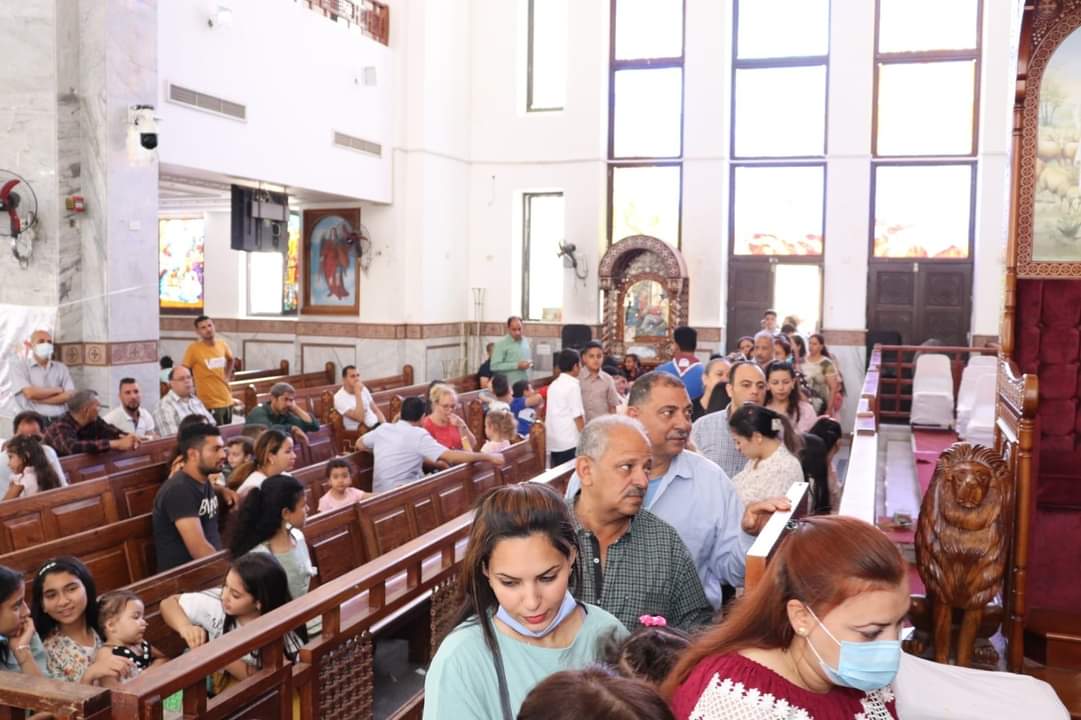 المهنئون يتبادلون التهاني في ساحة كاتدرائية الأنبا شنودة بالغردقة