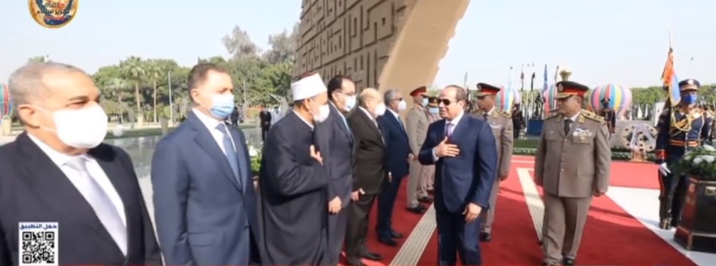 السيسي يضع إكليلًا من الزهور على النصب التذكاري لشهداء القوات المسلحة في ذكرى تحرير سيناء