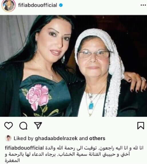 وعبرت الفنان فيفي عبده، عن حزنها لرحيل والدة الفنانة سمية الخشاب، وكتبت عبر حسابها الشخصي بموقع الفيديوهات القصير انستجرام: إنا لله وإنا إليه راجعون، توفيت إلى رحمة الله والدة أختي وحبيبتي الفنانة سمية الخشاب، برجاء الدعاء لها بالرحمة والمغفرة.