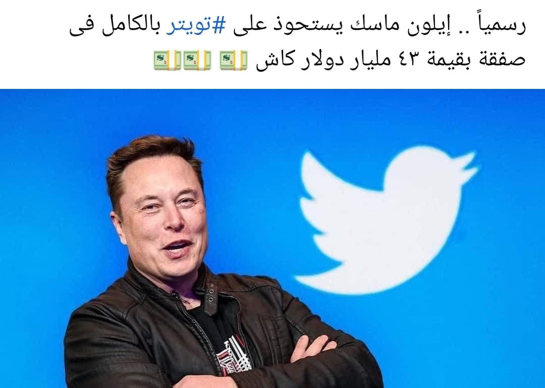 وعلق متداول عبر فيسبوك: رسميًا إيلون ماسك هو مالك تويتر الجديد في صفقة تقدر بـ 43 مليار دولار.