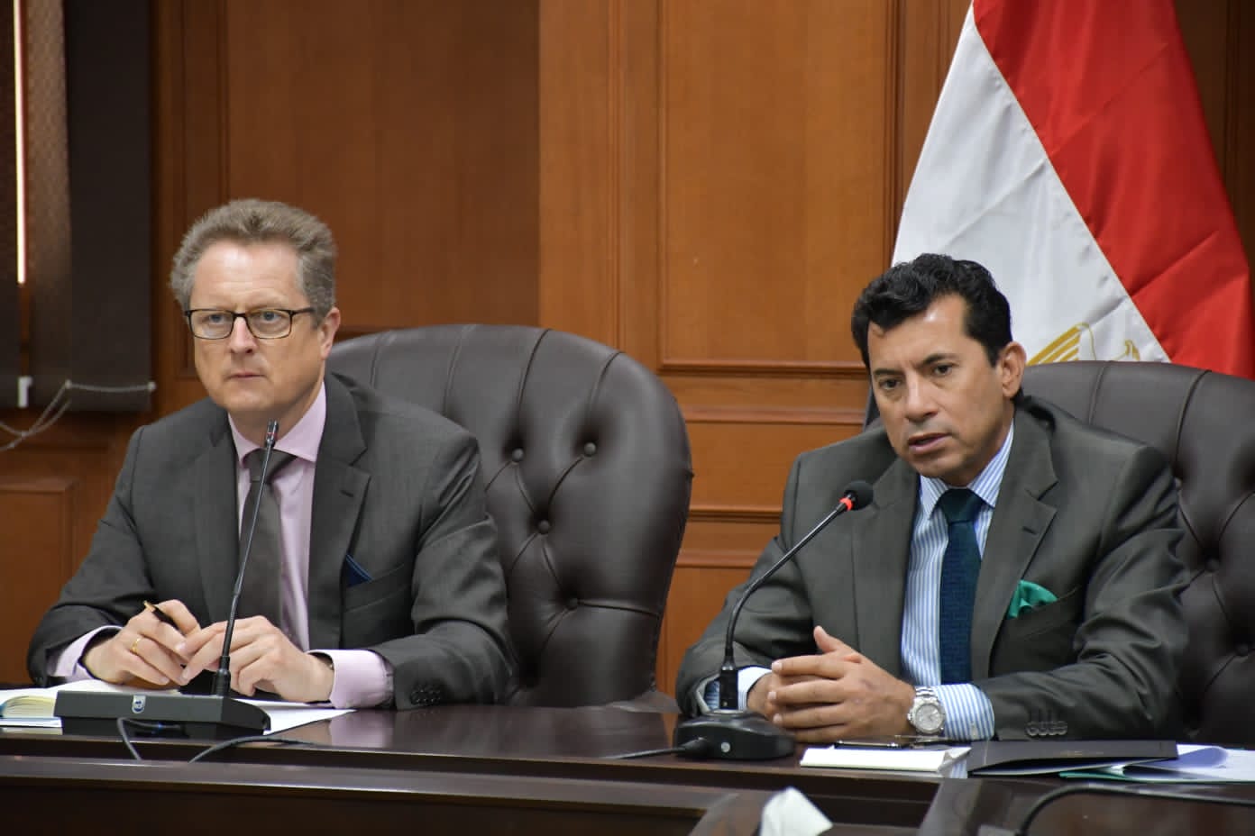 استقبل الدكتور أشرف صبحي، وزير الشباب والرياضة، صباح اليوم الثلاثاء، السفير فرانك هارتمان، السفير الألماني بالقاهرة والوفد المرافق له، وعدد من ممثلى الوكالة الألمانية للتعاون الدولي GIZ، في لقاء موسع لبحث سبل التعاون الثنائي بحضور مجموعة من قيادات الوزارة.