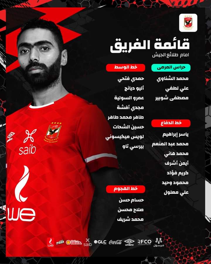 أعلن بيتسو موسيماني، المدير الفني للفريق الأول لكرة القدم بالنادي الأهلي، قائمة الفريق لمواجهة طلائع الجيش مساء الأربعاء في إطار منافسات بطولة الدوري الممتاز.