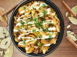 المكونات: كيلو فراخ مخلية مقطع شرائح رفيعة جدا، وكيلو أرز بسمتي، 5 فصوص ثوم مفروم، وبصلة متوسطة الحجم مفروم ناعم، وربع كوب ليمون، ومعلقة كبيرة من الخل، وملعقة كبيرة من الملح، ونصف ملعقة كمون، ونصف ملعقة فلفل أسود، ونصف ملعقة من بهارات الدجاج، ونصف معلقة كزبرة جافة، ونصف معلقة من القرفة، ونصف ملعقة جنزبيل، ثمرة طماطم مقطعة صغيرة جدا، وثمرة فلفل رومي أخضر مقطعة صغير حسب الرغبة، بصلة كبيرة مفروم، 5 أرغفة محمص فى الفرن أو الزيت بقليل من زيت الزيتون.