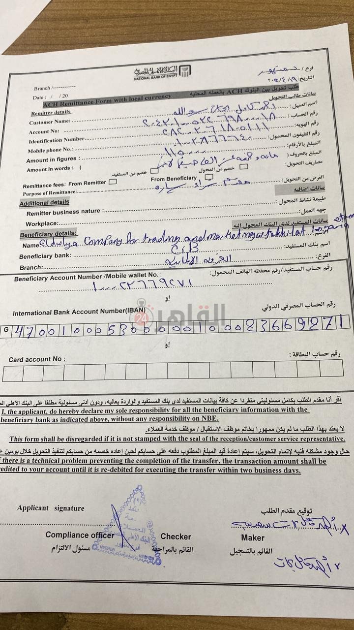 وبالفعل حوّل لهم مبلغ قيمته 390 ألف جنيه خلال يومي (18-19) أبريل الجاري. أي بفارق 70 ألف جنيه عن السعر المرفق في استمارة الحجز والذي تقدر قيمته بـ 365 ألف جنيه. ولكنه فوجئ بعد بضعة أيام بصدور قرارًا من غبور أوتو بالتعاون مع جهاز حماية المستهلك يفيد بتسليم السيارات بالسعر القديم.