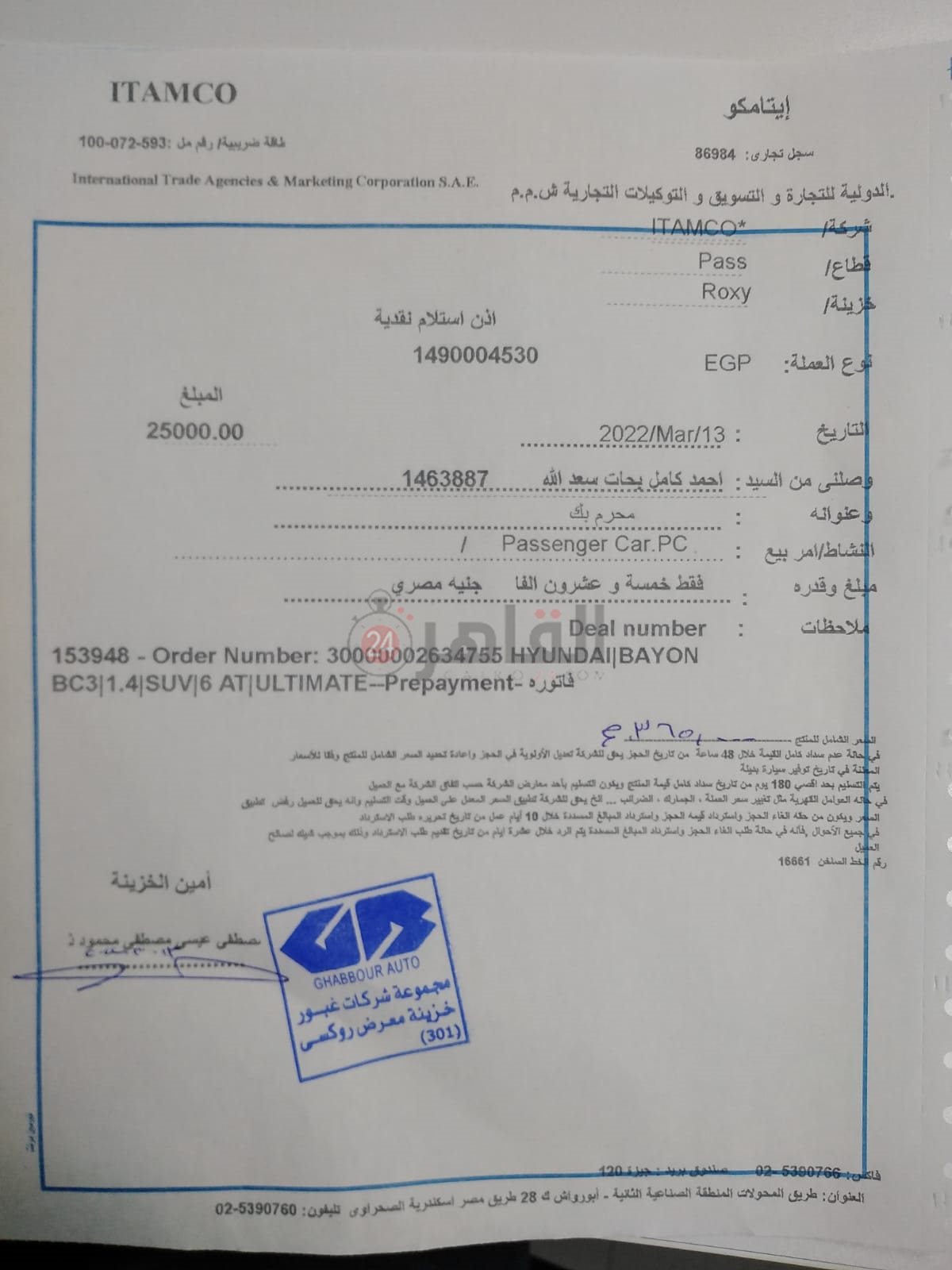 وفي هذا الصدد، قال المهندس أحمد كامل، أحد حاجزي سيارات هيونداي بايون إنه حجز سيارة هيونداي بايون 2022 الفئة الرابعة بمبلغ 25 ألف جنيه، وذلك بتاريخ 14 مارس من فرع التوكيل بمنطقة روكسي، وفوجئ عقب ذلك بزيادات متتالية على السيارة بإجمالي 70 ألف جنيه مصري.