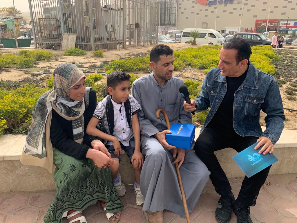 طارق علام يواصل جبر الخواطر في الشارع المصري.. ويهدي طفلًا مريضًا بالسرطان جائزة