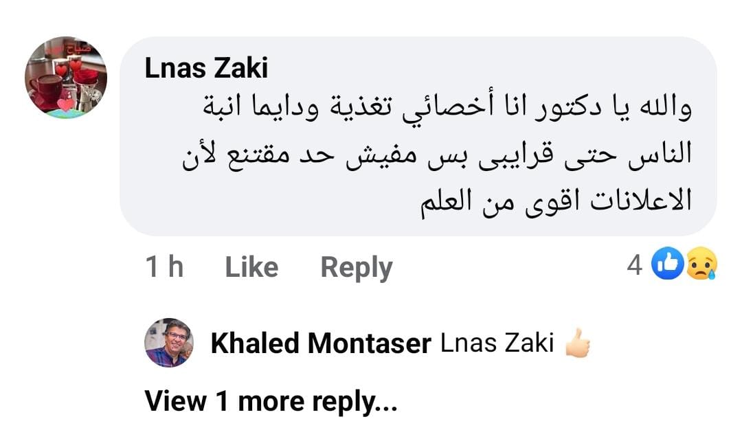 بينما علق حساب آخر: 2 امبول حرق، دول لو بنزين مش هيحرقوا الدهون كده، فيما قالت لانس زكي: والله أنا إخصائي تغذية ودايما أنبه الناس حتى قرايبي، بس مفيش حد مقتنع، لأن الإعلانات أقوى من العلم.