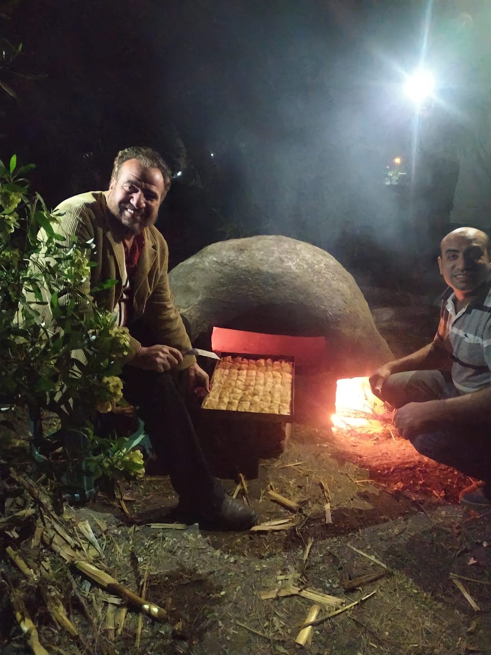 وفي صباح أول أمس، همّ الرجال لتجميع بعضهم والذهاب إلى الأرض الزراعية، وحملوا الأحطاب لتشغيل الفرن البلدي على الطريقة البدائية، حيث إن تلك الوسيلة تُحدث فرقًا واضحًا في طعم الكعك والبسكويت، على عكس الأفران الحديثة.