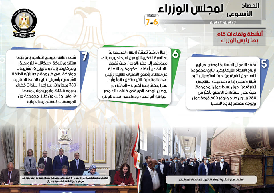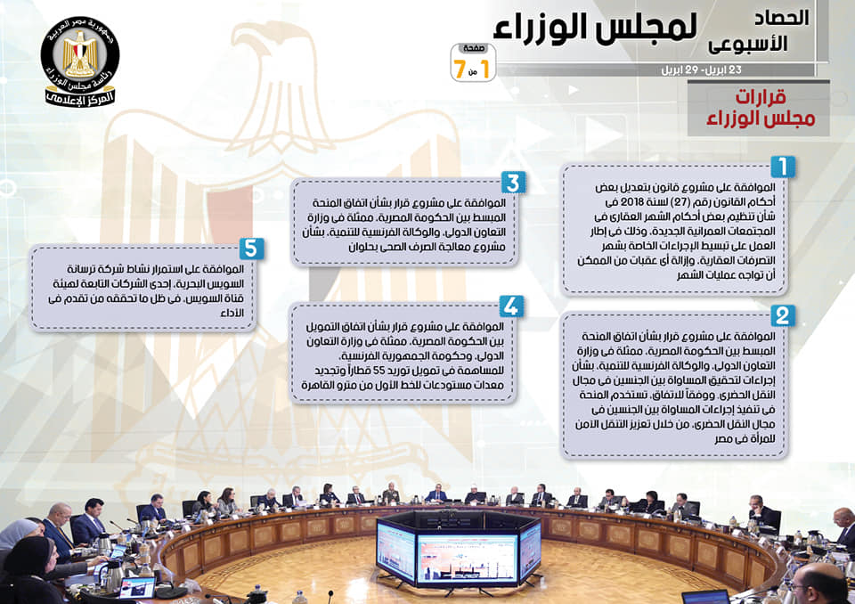 الحصاد الأسبوعي لمجلس الوزراء
