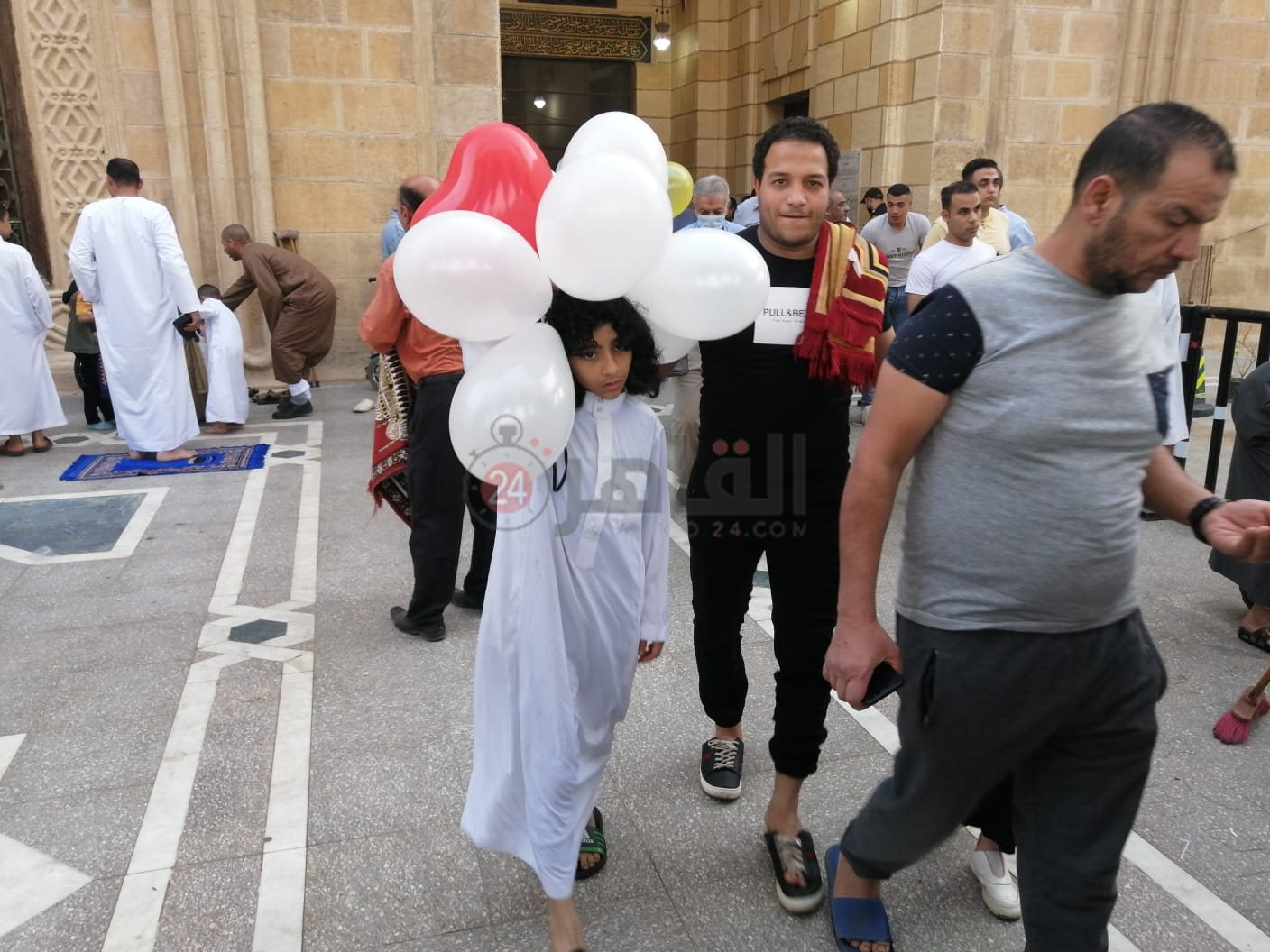 وشهد محيط المسجد انتشار بائعين الحلوى والبلالين الملونة والاكسسورات وبائعي الكور والصفارات وبائعي اللب والسوداني والحمص