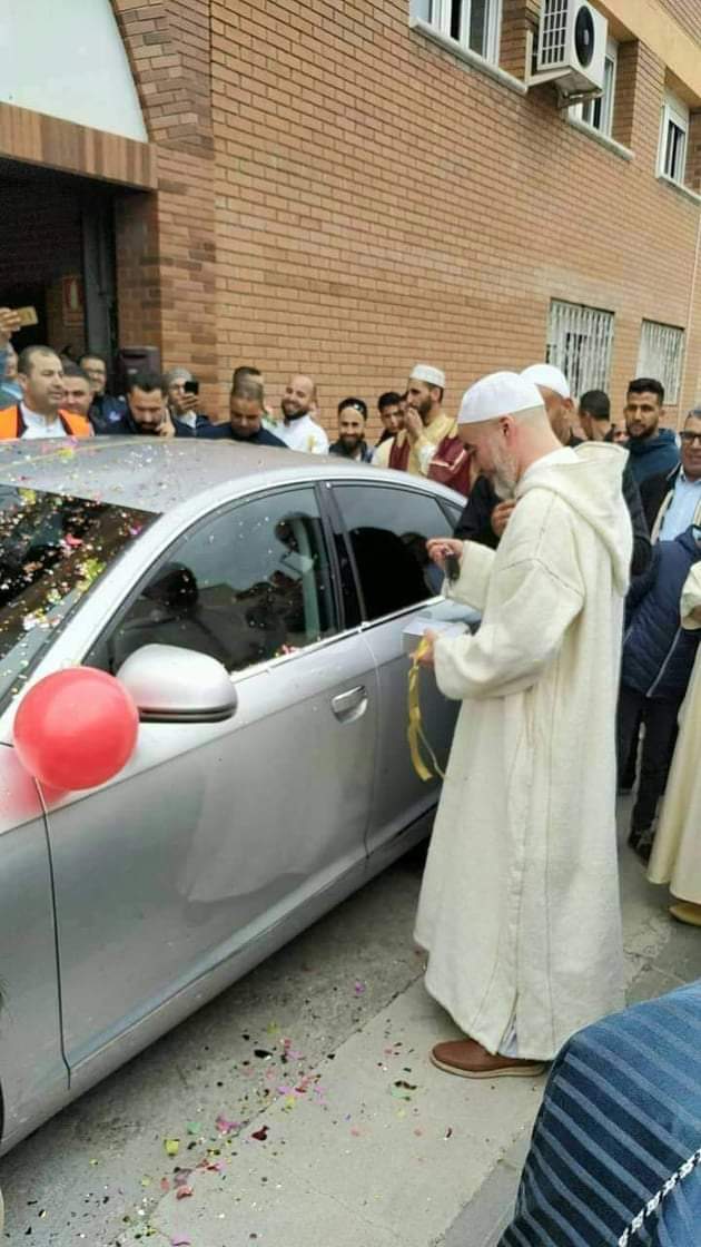 ومع حلول عيد الفطر المبارك، أمس، أهدى مصلون من الجالية العربية والمسلمة ببلدة طاركة في مدينة لييدا الإسبانية، إمام مسجد الرحمة والخطيب أسامة بوعصاب؛ سيارة فاخرة من نوع Audi 6، عقب انتهاء شهر رمضان، وبمناسبة عيد الفطر المبارك.