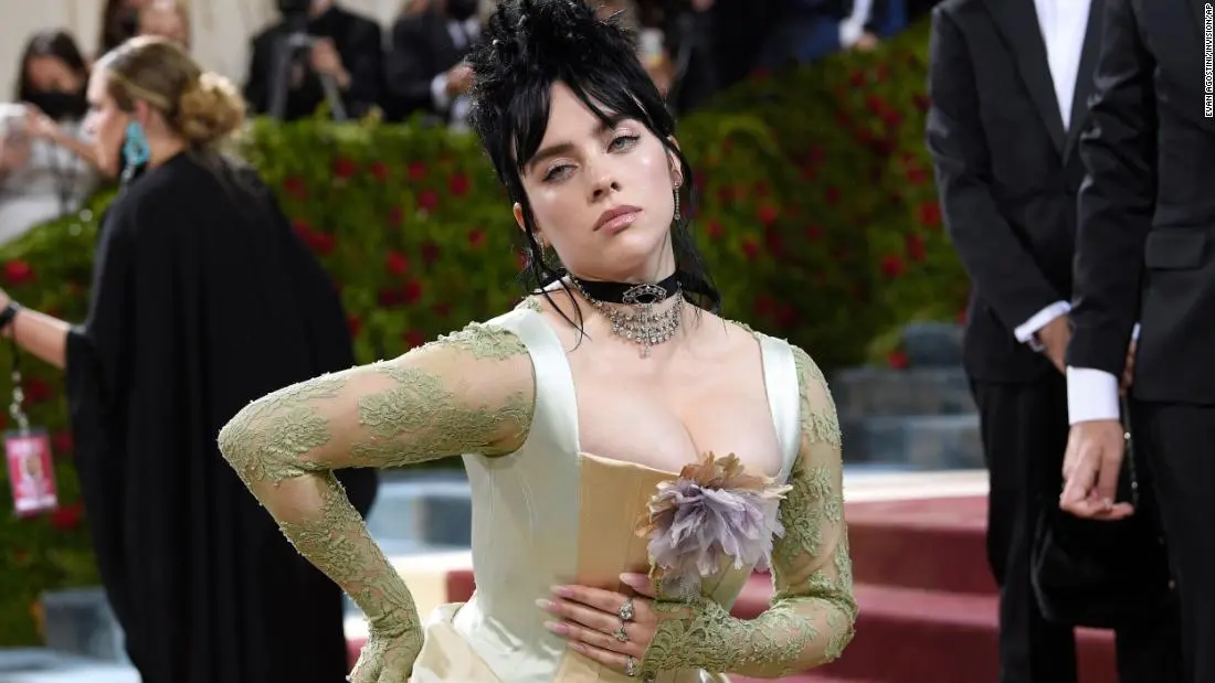 كما ظهرت الفنانة الأمريكية نيكولا بيلتز بأطلالاة جريئة للغاية رفقة صديقها، حيث ارتدت فستان مميز بالون الزهري، كما تألقت المغنية بيلي إيليش على السجادة الحمراء في حفل ميت جالا، حيث ارتدت فستان مقتبس عن الحقبة الذهبية بالولايات المتحدة، وتم تصميم الفستان من مواد معاد تدويرها.