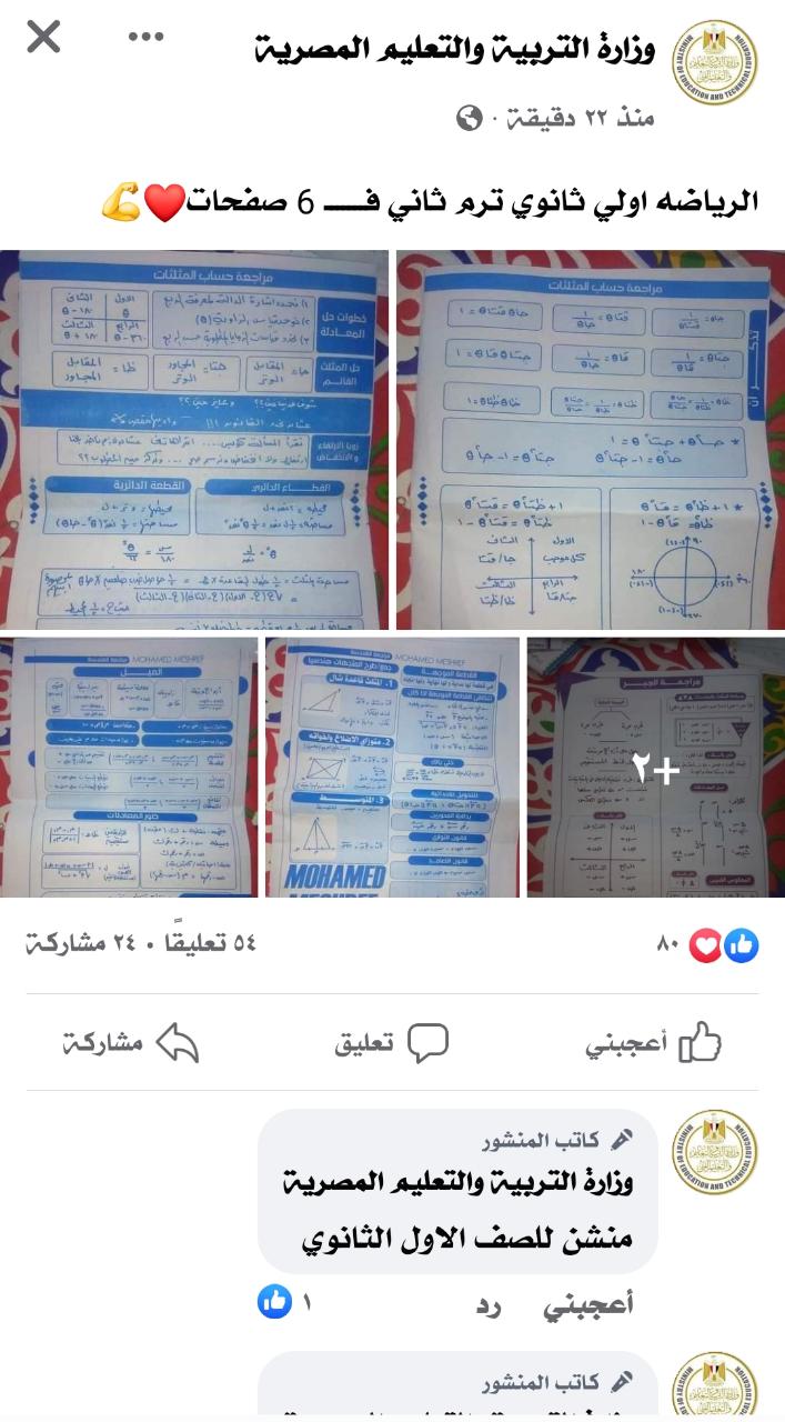 نشرت صفحة تنتحل هوية وزارة التربية والتعليم الفني عبر موقع التواصل الاجتماعي فيس بوك عدة مراجعات لطلاب الصفوف الثانوية الثلاثة.