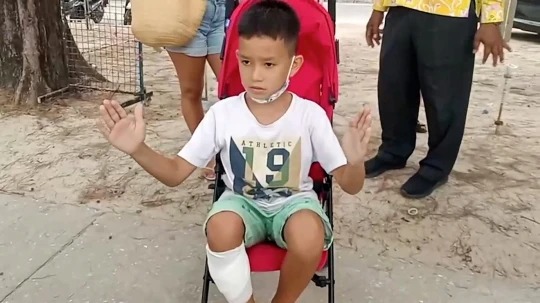 واستدعى وقتها خدمات الطوارئ، وتم نقل الطفل إلى مستشفى بانكوك في فوكيت لتلقي العلاج، حيث حاول أن يظل هادئًا حتى ذهب إلى المستشفى، وأخبر الأطباء أن العضة على ساقه كانت أكثر شيء مؤلم تعرض له على الإطلاق.