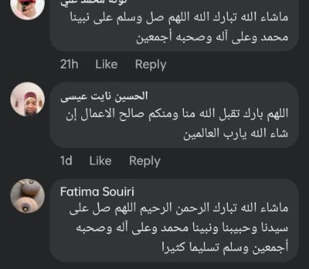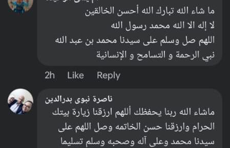 وعلق أحد الرواد عبر فيسبوك: ماشاء الله تبارك الله اللهم صل وسلم على نبينا محمد وعلى آله وصحبه أجمعين.