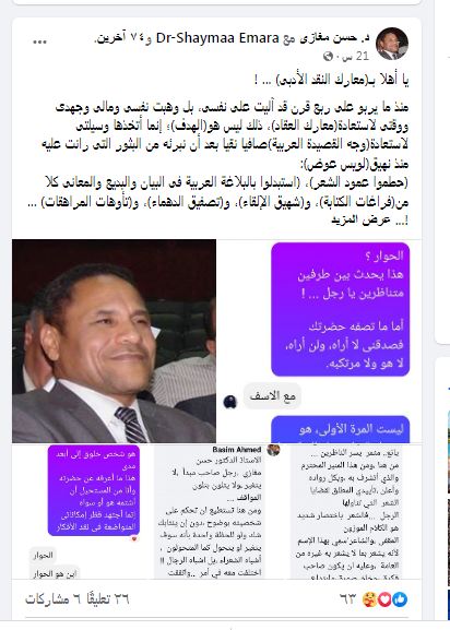 ولا أعلم لماذا اللف والدوران والتعمية على شخص مهاجم أمل دنقل؟ نحن هنا نكشف صراحة لمن لا يعرف أن الدكتور حسن مغازي هو صاحب الهجوم على أمل دنقل، وحسن مغازي لمن لا يعرف أكاديمي وشاعر وعروضي، أنا وأنت نختلف معه كثيرًا كما نشاء، لكن الإصرار على عدم التصريح باسمه وأنه صاحب تلك الأفكار ليس في صالح معارضيه بالأساس، فالقول إنه لا يستحق الرد كما يزعم البعض مرفوض لكون الرجل يفصح عن نفسه ولا يتحدث في الخفاء ويطرح ما يقول تصريحًا لا تلميحًا بل منذ سنوات، ولسان حاله يقول: هل من مبارز؟ وعدم الرد عليه يعني ضمنيًا عجز الطرف الآخر وقلة حيلته والتسليم له، كما أنه أستاذ جامعي وله أرضية الطلابية على الأقل، وتأثيره فيهم يعني اتساع دائرة أفكاره وترسيخها.