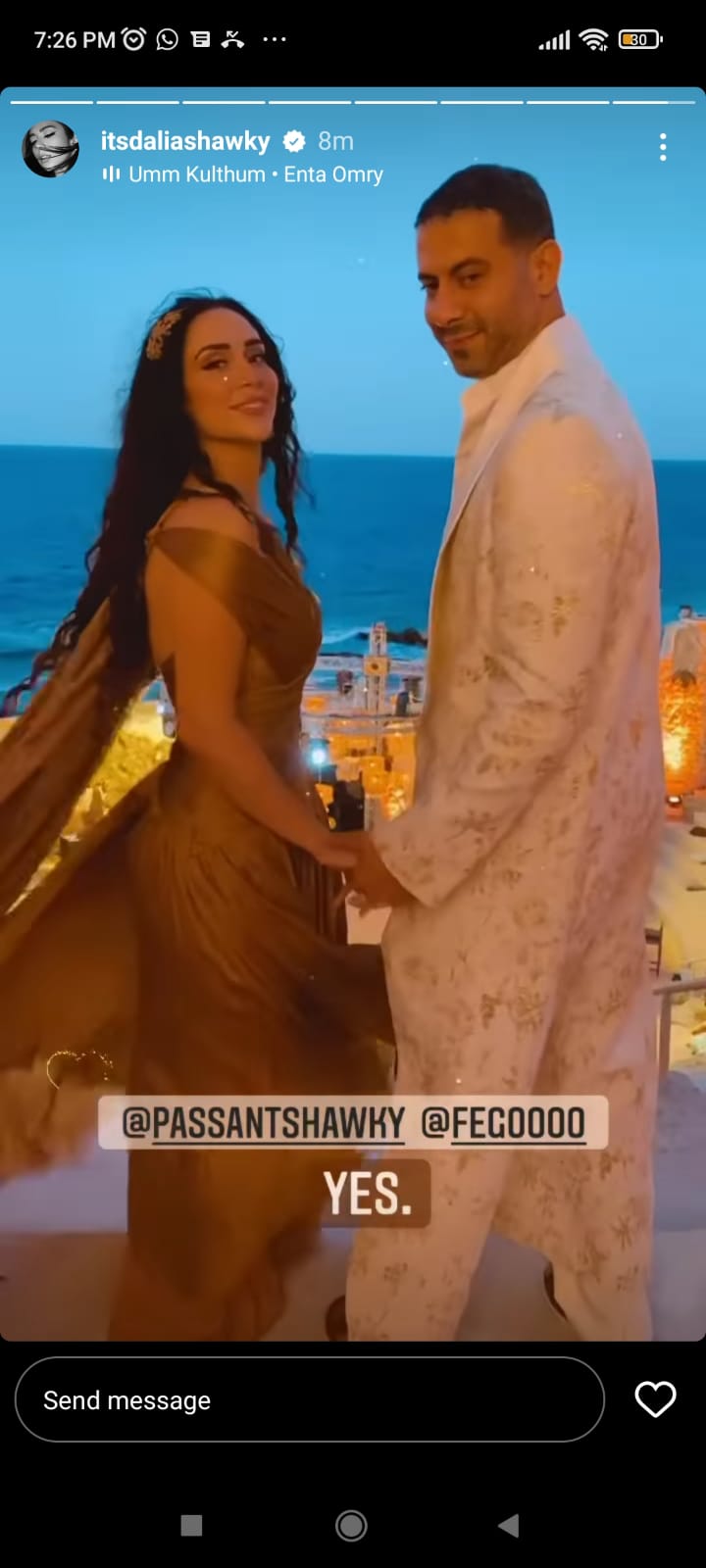 بالزي اليوناني.. الإطلالة الأولى لـ بسنت شوقي ومحمد فراج في حفل زفافهما | صور
