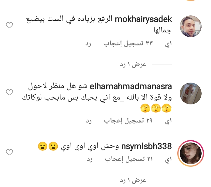 وجاءت تعليقات الجمهور على أحدث ظهور لها، كالتالي: كده أوفر ياست غادة الأستايل غير لائق، الرفع بزيادة في الست بيضيع جمالها، ما عرفتك والله، خاسة أوي، ليه الرجيم القاسي ده، أنتِ قمر في كل حالاتك بس خاسة أوي، ومخليكي مش حلوة وربنا يفرحك، شكلك إتغير أوي لما خسيتي، شو ها المنظر مش بحب لوكاتك.. مش مصدق أن دي غادة عبد الرازق.