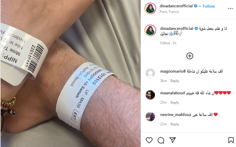 وعلّق العديد من المتابعين على الصورة، وجاءت التعليقات كالتالي: ألف سلامة عليكم.. إن شاء الله تطلع زي الفل.. ربنا يديكوا الصحة.. ربنا يطمنا عليكم.. صحة وعافية طمنينا عليكم.. ألف سلامة يارب تكون النتائج سليمة.. سلامتك إن شاء الله.. يعطيكم الصحة والعافية إن شاء الله.