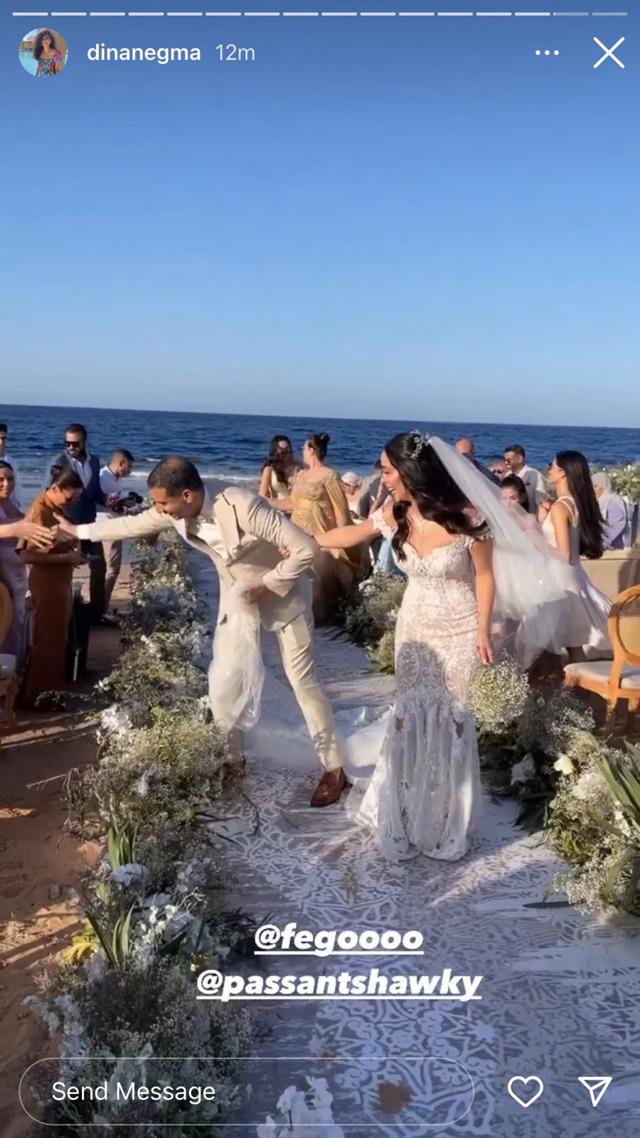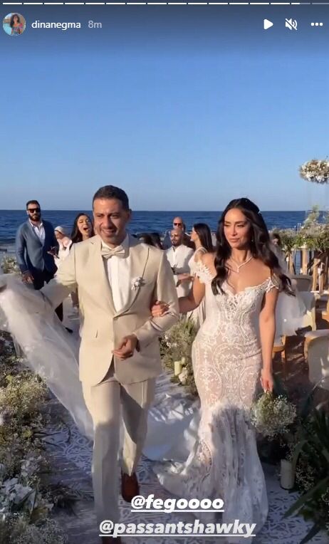 وفور دخول العروسين تعثر محمد فراج في فستان بسنت وكاد أن يسقط ولكنه سيطر على الموقف قبل أن يقع، وواصل الرقص، وسط تصفيق من الحاضرين.