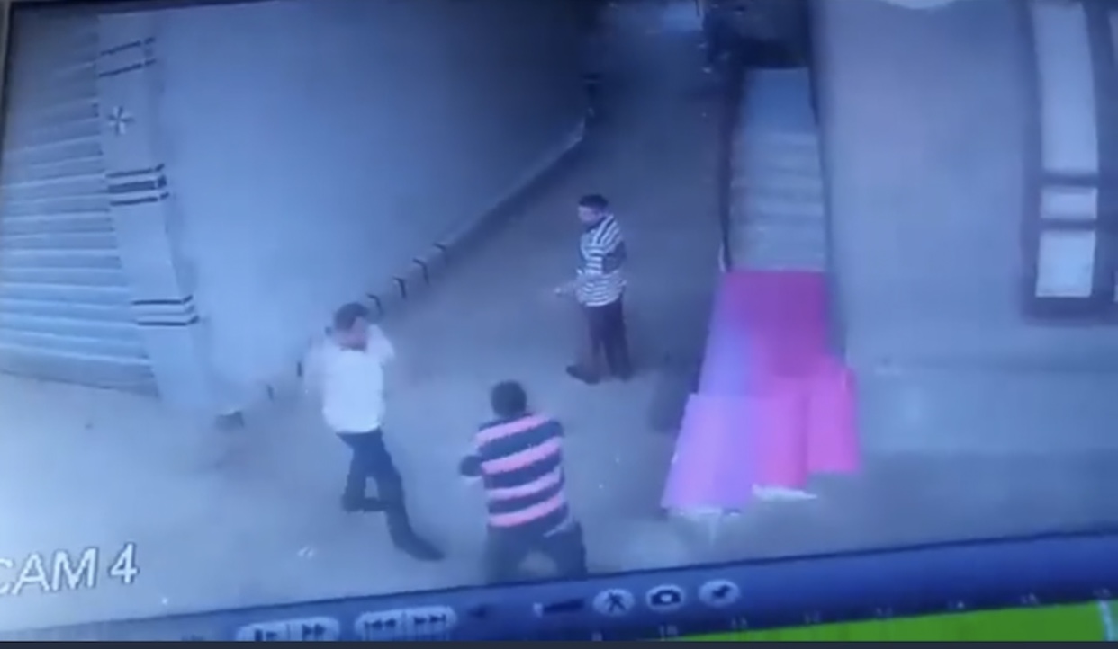 وظهر في الفيديو، الذي رصدته كاميرات المراقبة، رجل مسن يقف في الشارع، ويتجه إليه شخص آخر، ممسكا في يده سلاحا أبيض، ويعتدي عليه وسط الشارع في وضح النهار.