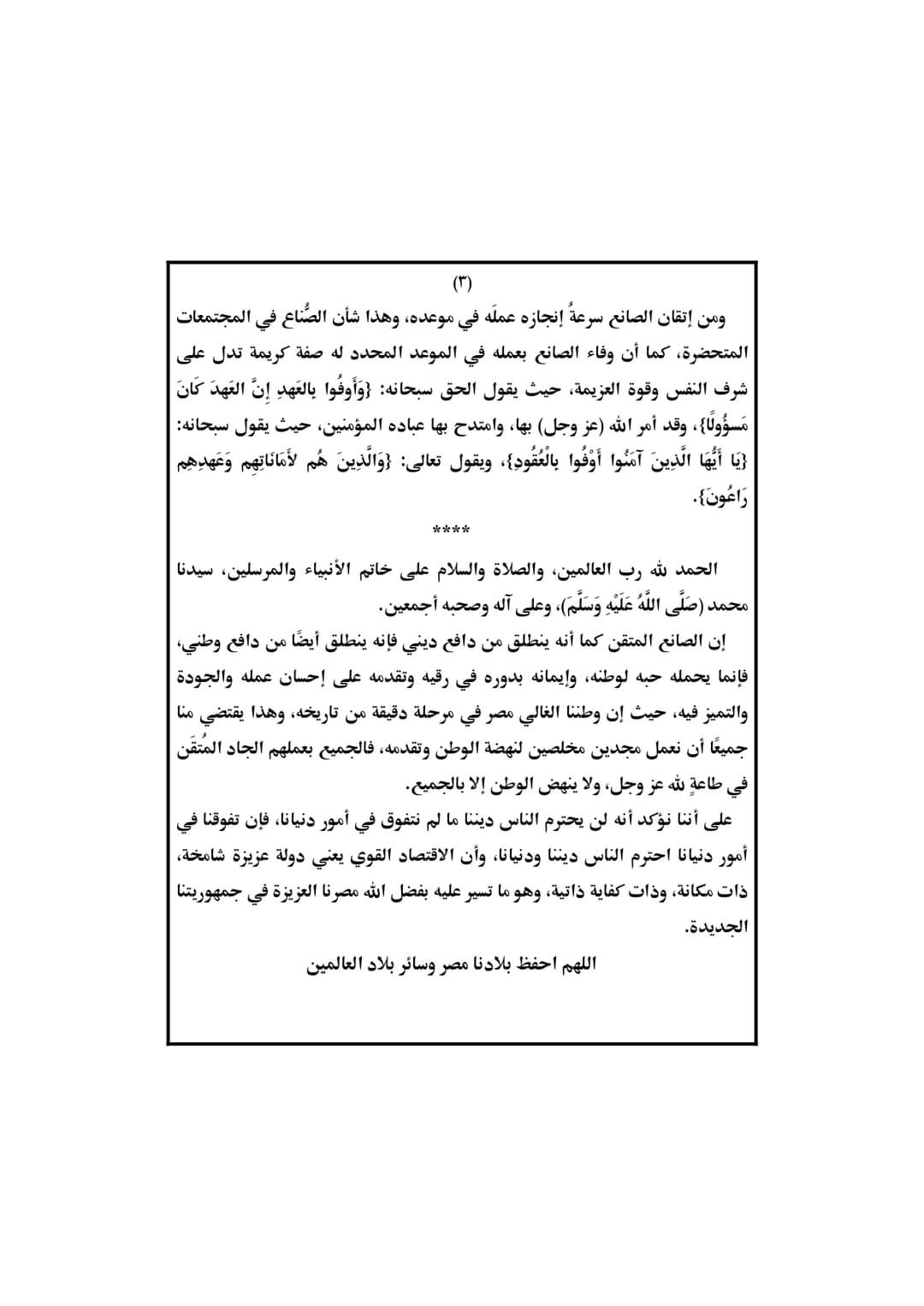الأوقاف: الصانع المتقن موضوع خطبة الجمعة المقبلة