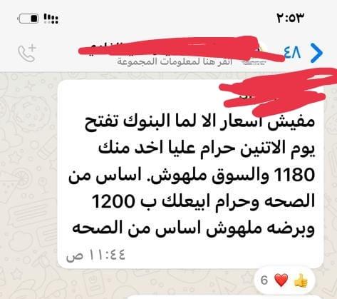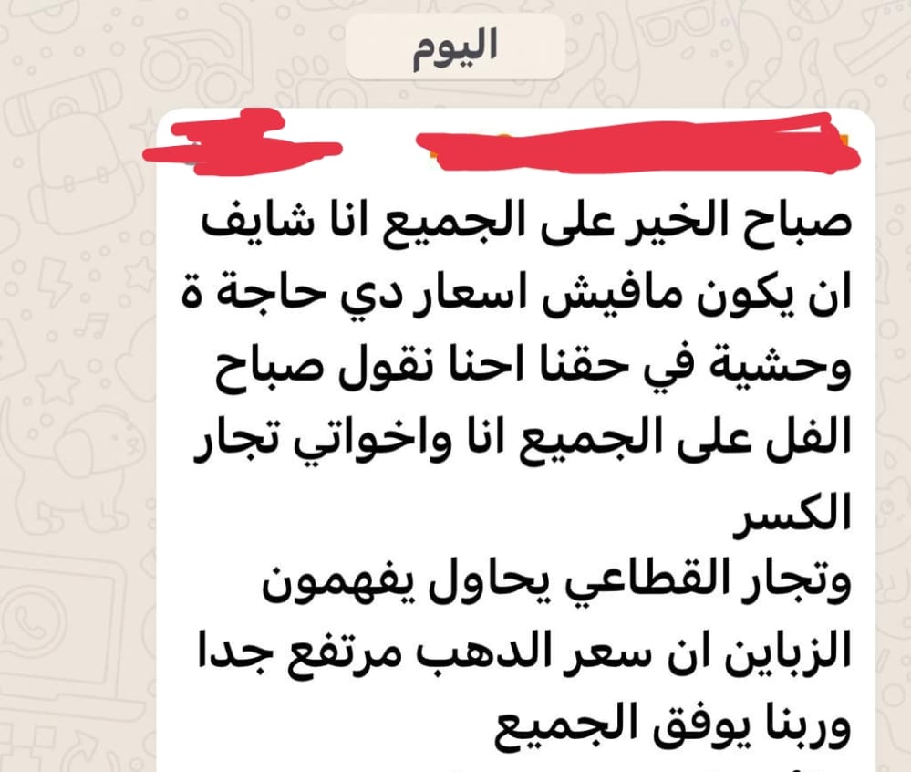 وأشار صاحبة شركة الإيمان - التي تعمل منذ عام 2016 ومقرها بالصاغة (الجمالية) ومسجلة لدى وزارة التموين - إلى أن استمرار البيع والشراء بالأسعار الحالية يخلق سوقًا سوداء، مشددًا على أن الضرر يلحق بِنا جميعًا، قائلًا: البيع بهذه الأسعار حرام، وفق تعبيره.