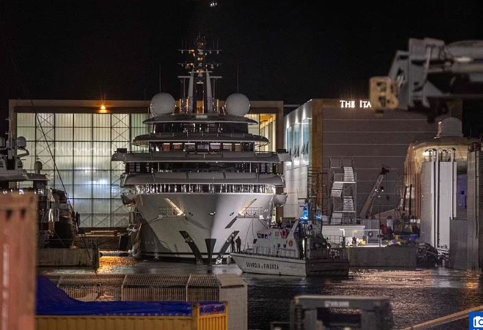 تمكنت السلطات الإيطالية، اليوم السبت، من احتجاز يخت فاره يبلغ ثمنه 700 مليون دولار ويبلغ طوله نحو 450 قدمًا وبه مهبطان لطائرات الهليكوبتر وحمامات سباحة، قبل أن يخرج من المياه الإقليمية الإيطالية، لشبهة امتلاك الرئيس الروسي فلاديمير بوتين له.