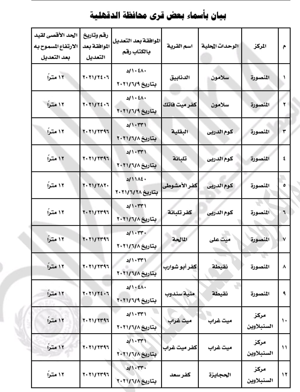 وزير الإسكان يعتمد قيود الارتفاع الجديدة لـ 34 قرية بالدقهلية │ أسماء